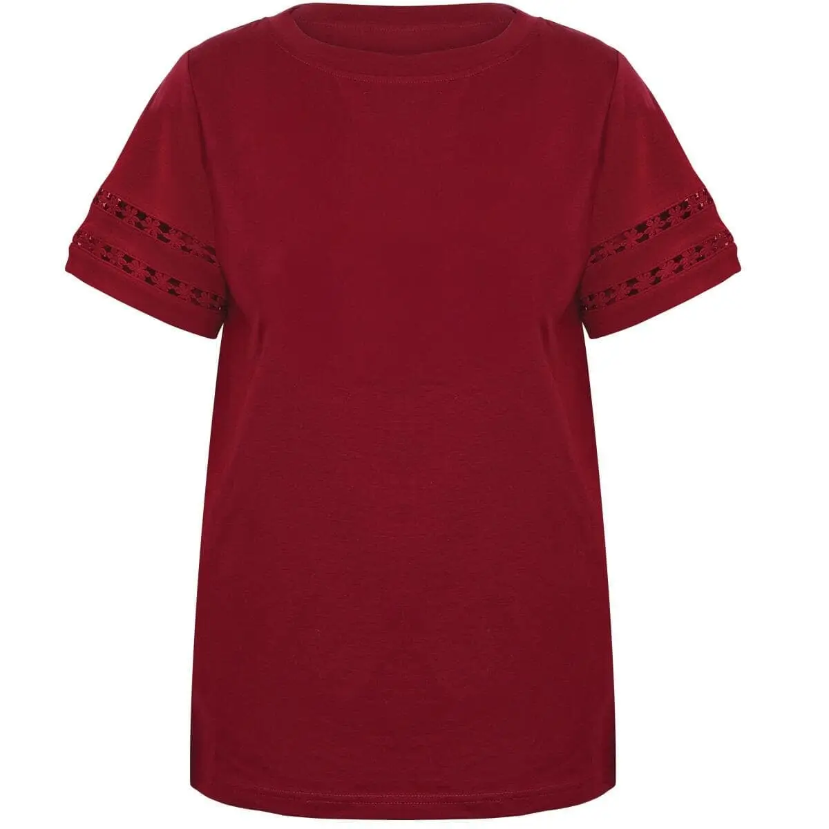 Slip into style with our durable short-sleeve top. Made from luxuriously soft fabric, this shirt offers unparalleled comfort. Features a lovely double band of florette embroidery on the sleeves. A must-have basic that pairs with virtually everything.