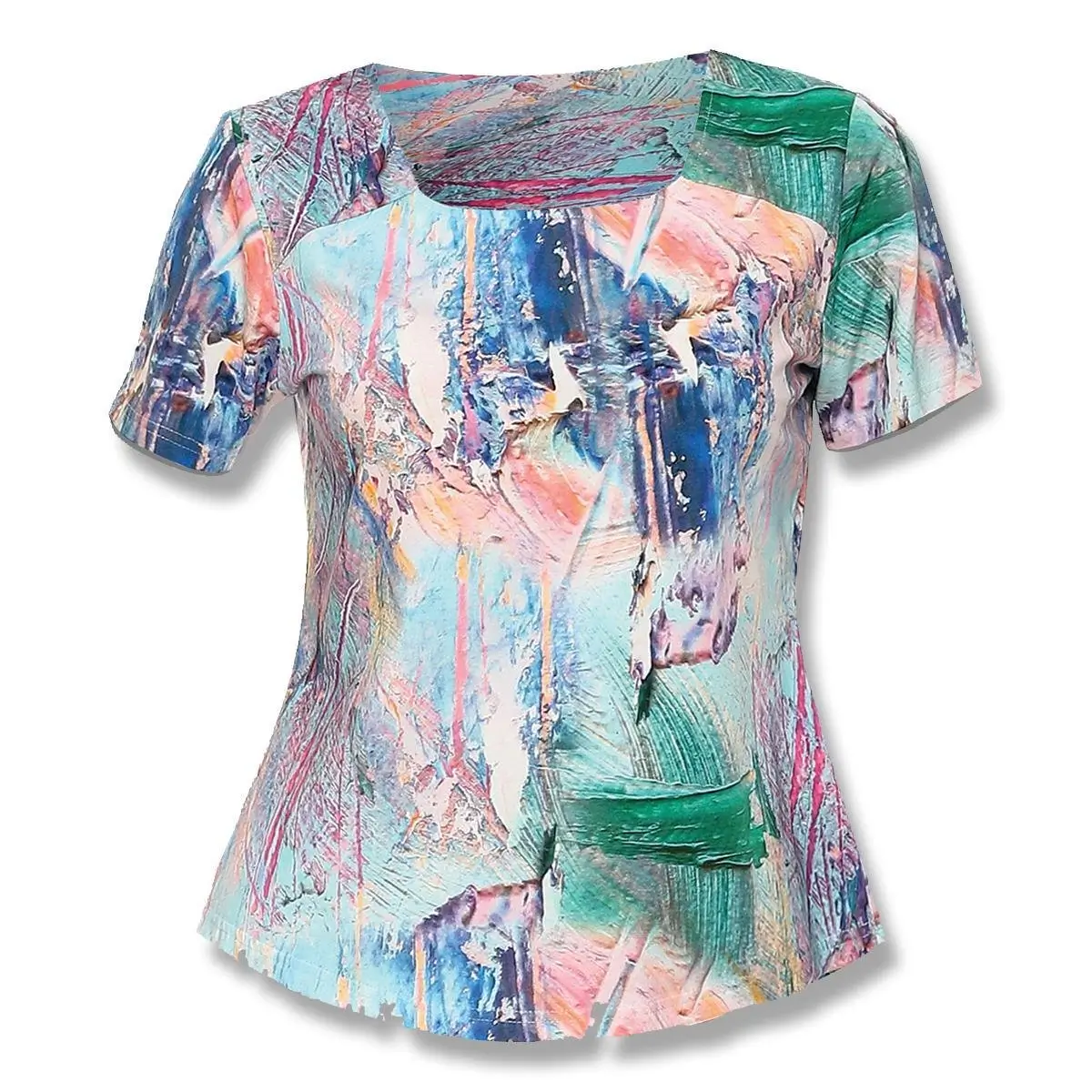 Exuding all the color and swash of a painter’s palette, this Hanna Top is the perfect top for spring! (96% Cotton/4% Spandex