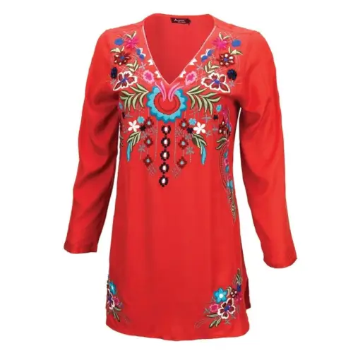 Red Floral Embroidered Tunic