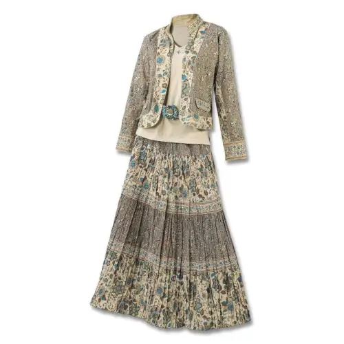 Sand & Turquoise Knit Top features 3/4 length sleeves with side slits and a charming sequin embellished neckline (100% Cotton) (S, M, L, XL, 1X, 2X, 3X)