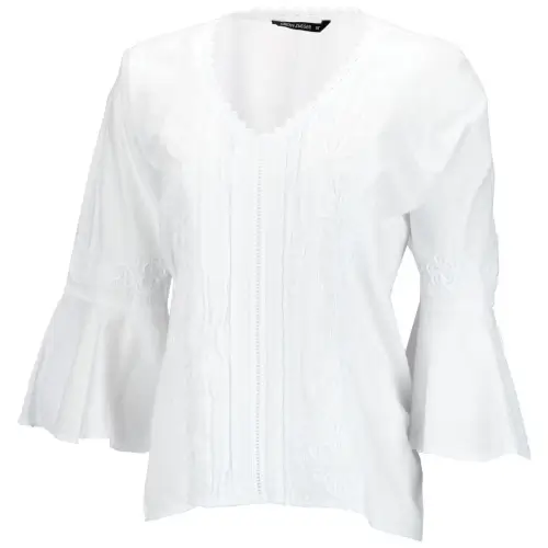 Beautiful and chic white tunic embellished with intricate floral and abstract white-on-white embroidery throughout. Airy and bright, featuring wide v-neck and loose sleeves for the ultimate comfort.