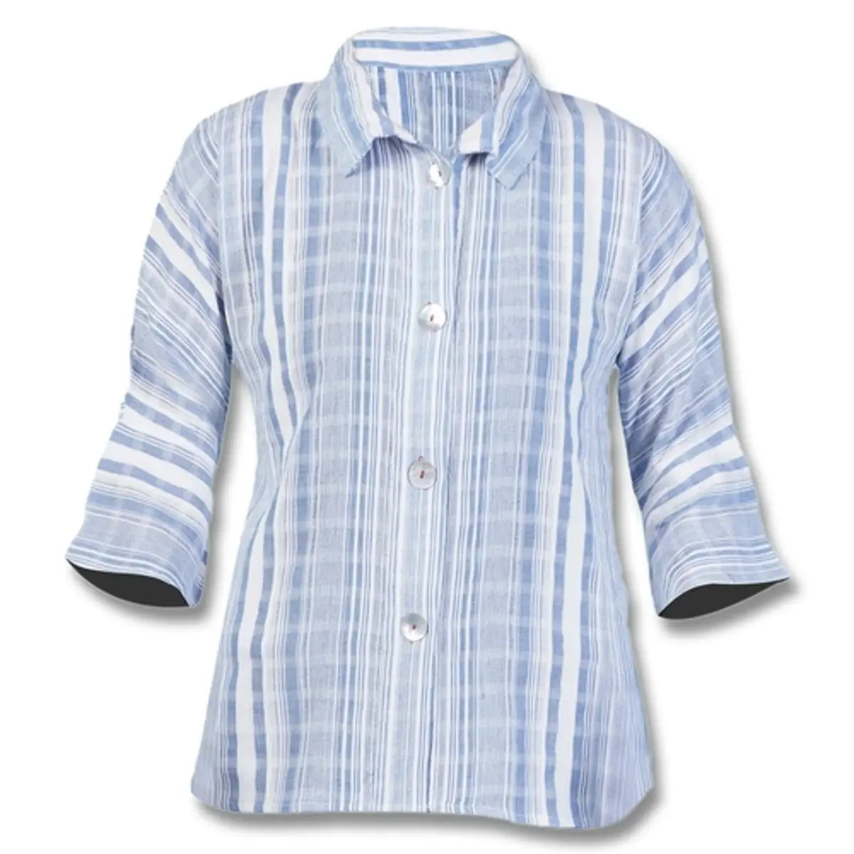 Lighten up your wardrobe with this comfy cotton shirt with a classy linen look! Button-down front with playful bell sleeves, soft wire in collar for shape and support. (100% Cotton)