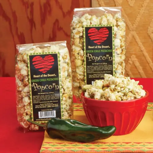 Hatch green chile comes through again with just the right amount of zing to keep you wanting more! Pistachio kernels, coated in caramel, harmonize perfectly with the green chile to create a superb snack. 6 oz.