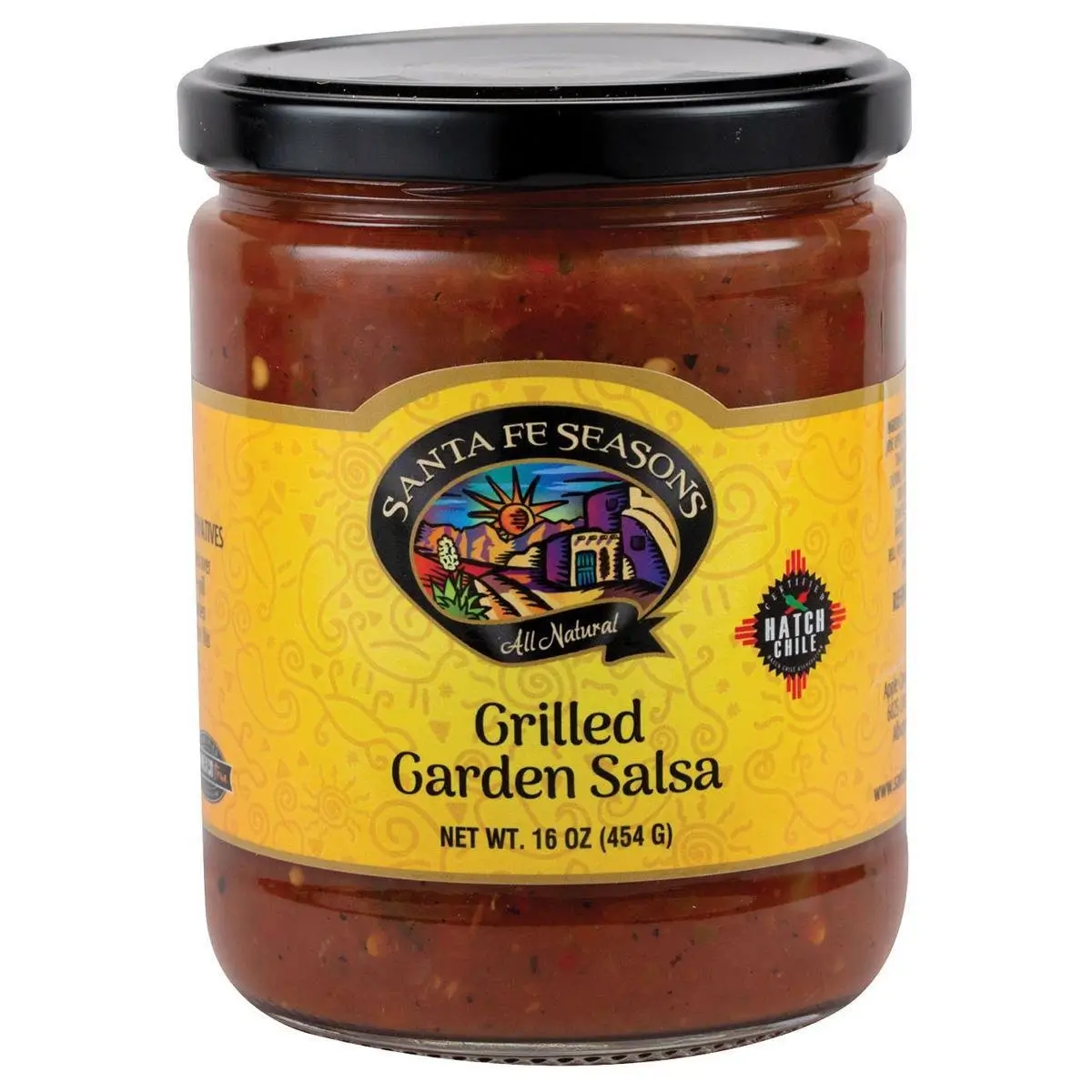 Grilled Garden Salsa is an uncommon treat of ripe Joe Parker chiles, roasted to perfection and combined with red bell peppers, red jalapenos, and fresh garlic. 16 oz.