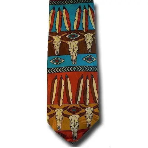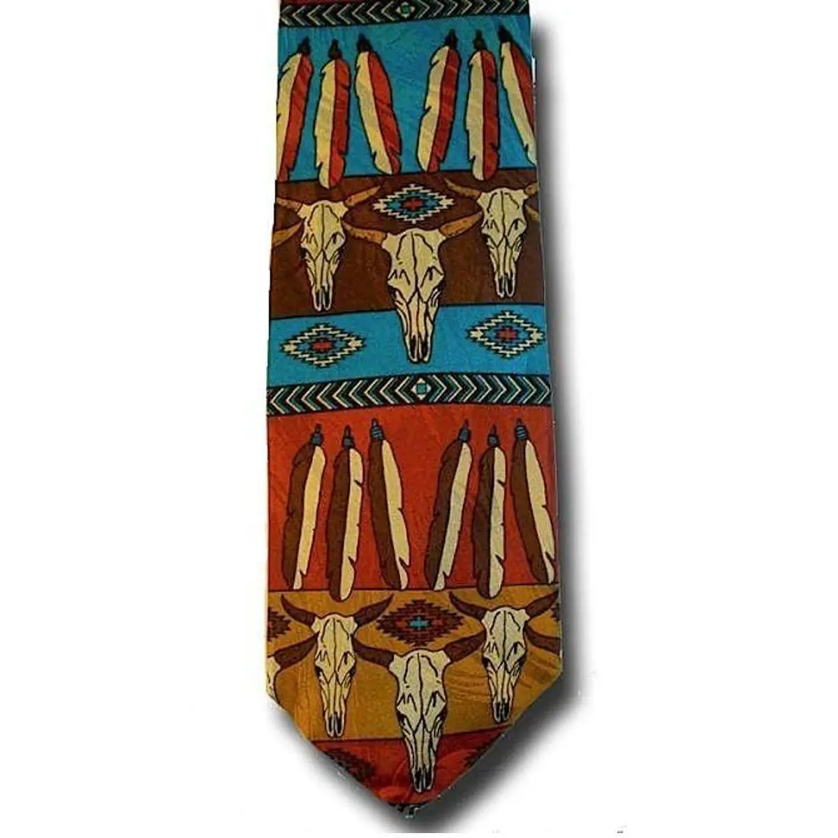 This Southwest Tie features the Buffalo Skull and Prayer Feather. (100% Silk)