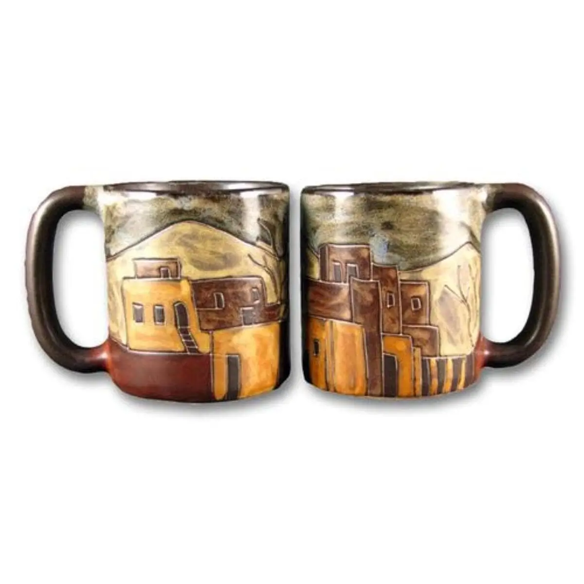 These generous Stoneware Coffee Mugs are wonderfully functional as well as being striking works of art! Original design by celebrated artist, Mara. Hand-engraved and hand-painted in Mexico. (Microwave and Dishwasher Safe) (16 oz. )