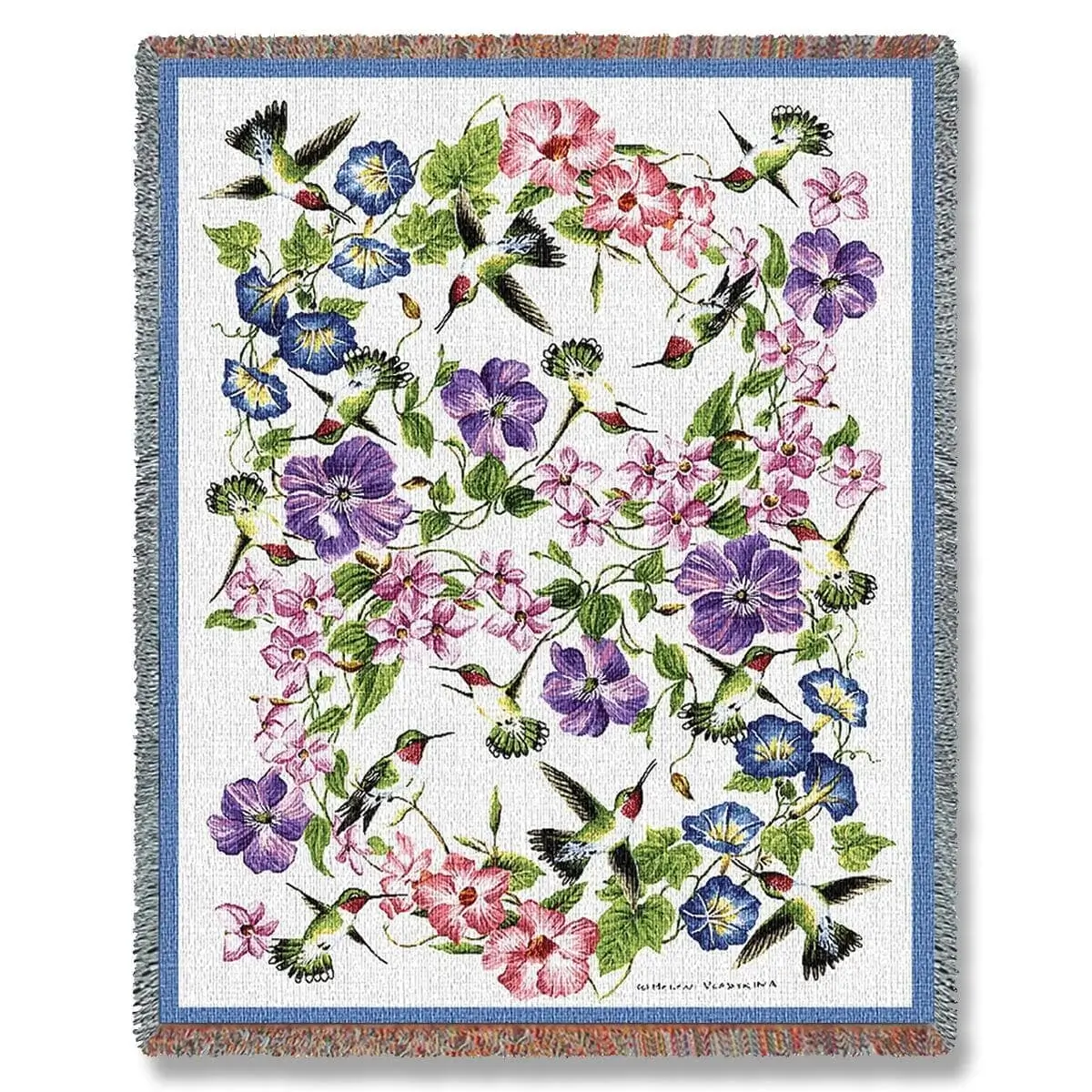 This glorious Hummingbird Blanket is is made of 100% Cotton, ensuring vibrant colors and a rich, comfortable feel. Proudly woven in America using advanced Jacquard weaving techniques. (54" x 72)