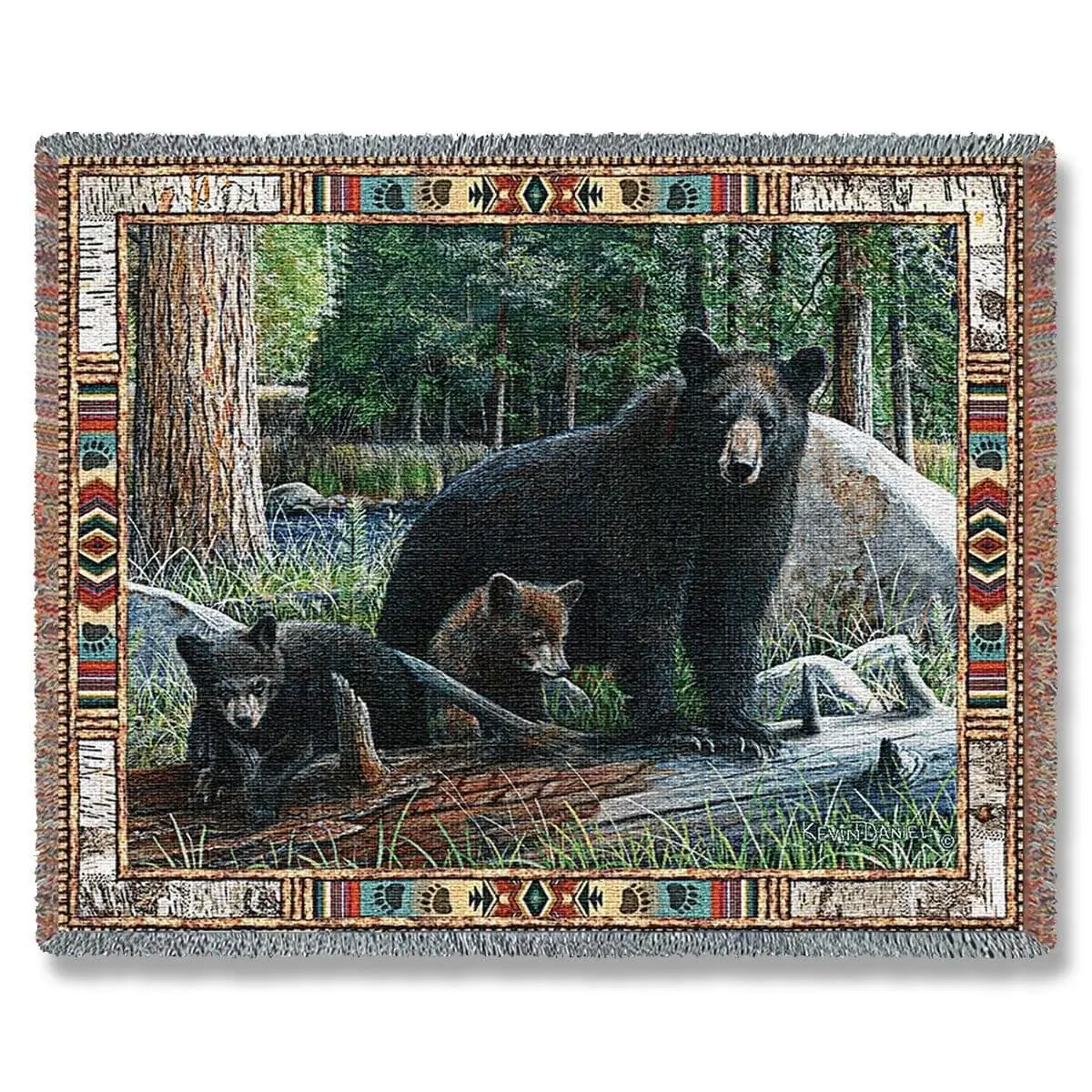 A watchful mother takes her two cubs out to discover the world in this rich, colorful Blanket made of 100% Cotton. Proudly woven in America using advanced Jacquard weaving techniques. (54" x 72)