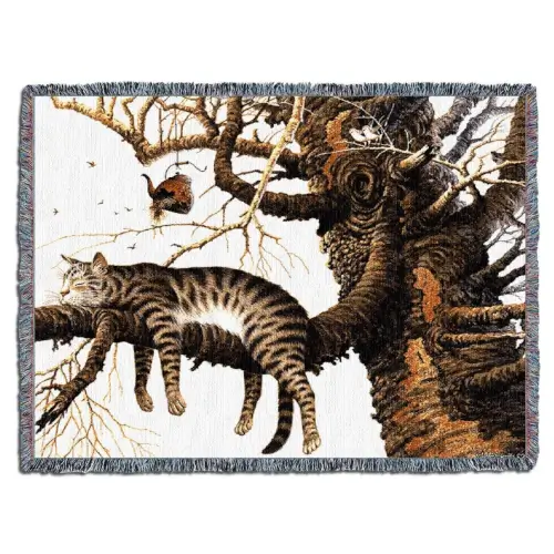 Ever feel up a tree and out on a limb? Just to pooped to participate? Soft to the touch and providing a warm, welcoming embrace, this whimsical throw blanket will make a beautiful addition to your home! This high-quality blanket is proudly woven in America! (54" Wide x 70" Long)