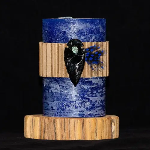 Hand poured, Native inspired scented candles that soothe the soul! Playfully decorated with arrowheads, feathers and beads.