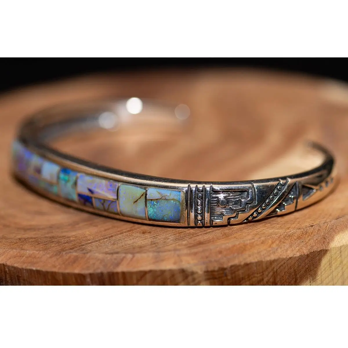 Featuring Lapis, Turquoise, Spider Opal and unique highlights set in sterling silver, this collection is a variety inlay series that sings and hums of class and swagger. Bold blue lapis is the perfect stone for wisdom and fortitude.