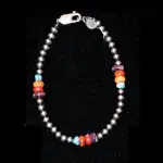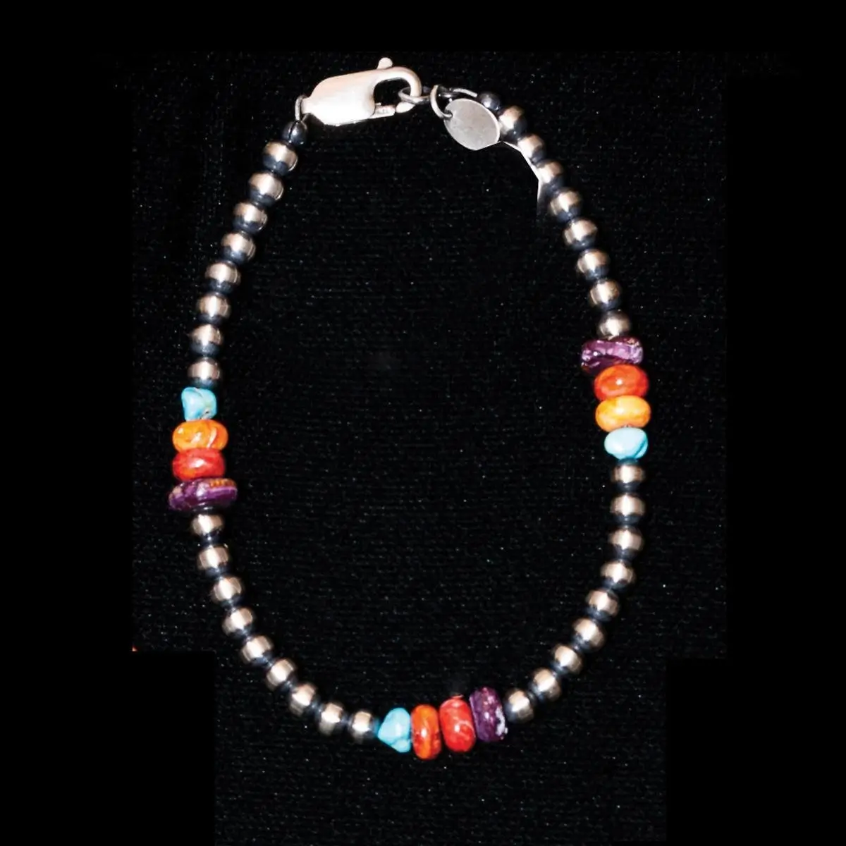 Handmade sterling silver Navajo pearls with striking turquoise and multi-color rondelles bracelet