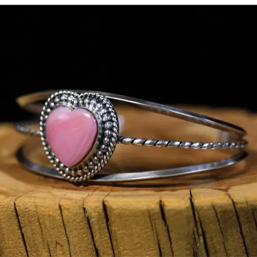 Pink Conch Heart Bracelet features a stunning heart stone in a beautiful sterling silver frame. One size, adjustable.