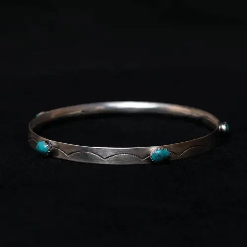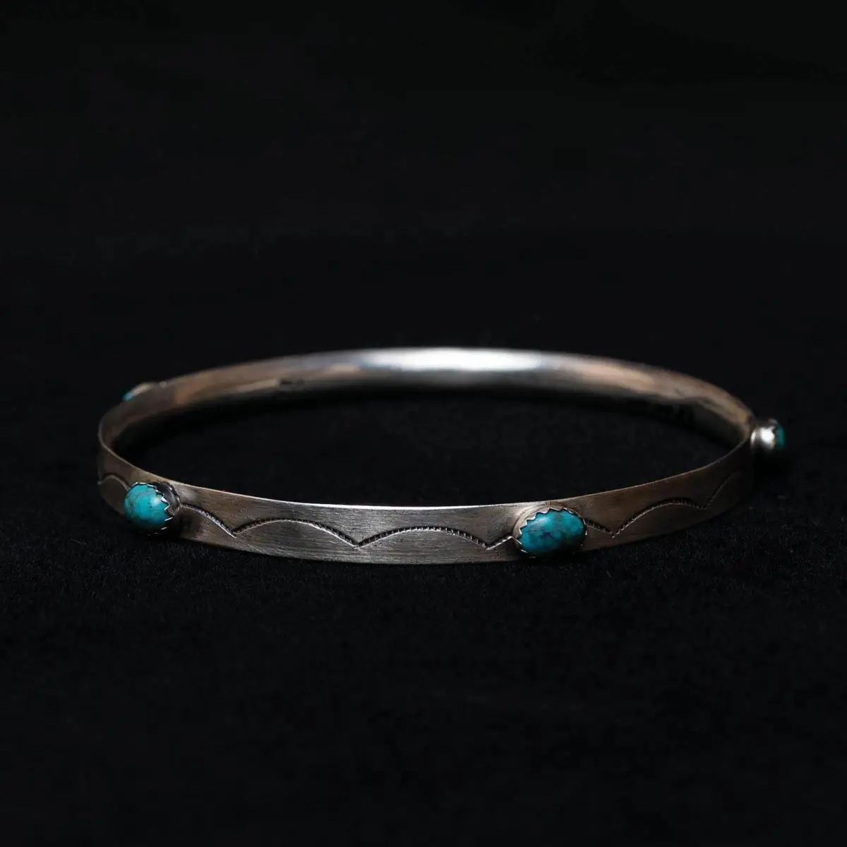 Turquoise and Silver Five Stone Bangle - Southwest Indian Foundation
