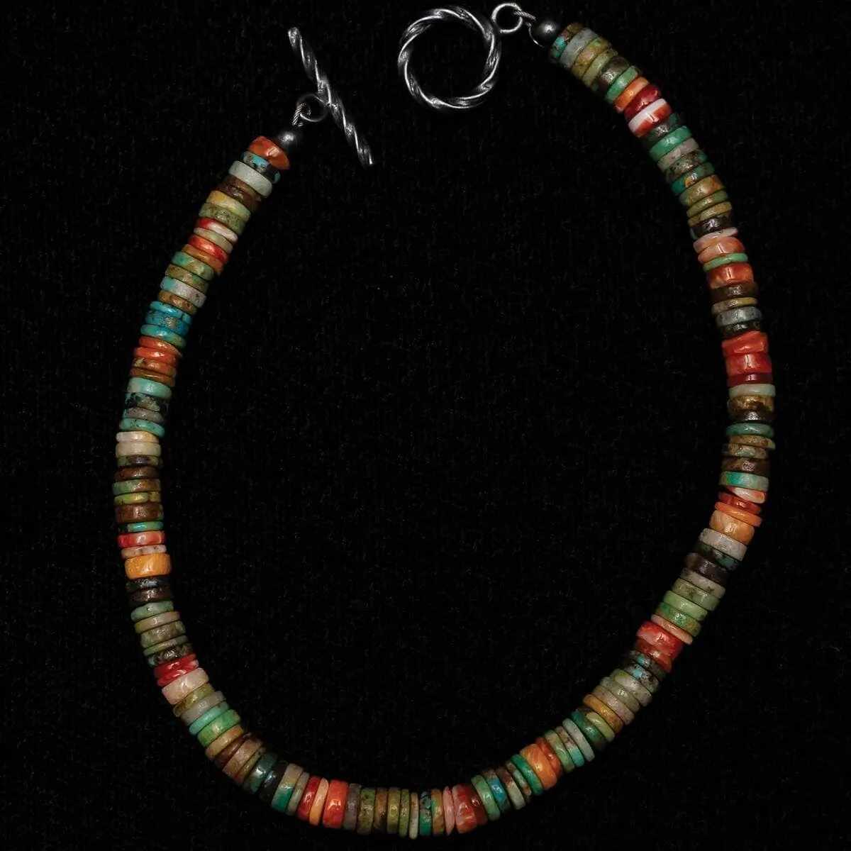 This collection of elegant spiny oyster shell and turquoise make a colorful statement. Each bead is carefully shaped and hand-strung, creating a feast of texture. Natural variations in color and marbling guarantee unique, one-of-a-kind beauty in each piece.