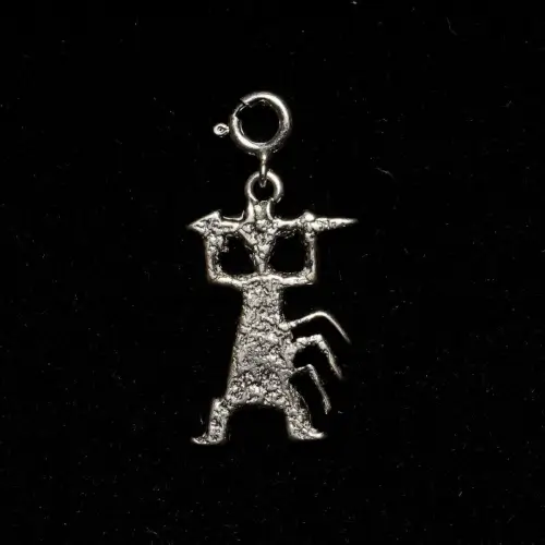 Introducing the Feathered Warrior Petroglyph Charm, a stunning piece of American Indian-inspired jewelry crafted from high-quality sterling silver. This perfect gift captures the essence of ancient petroglyph designs, making it a timeless addition to any collection.
