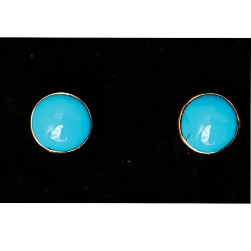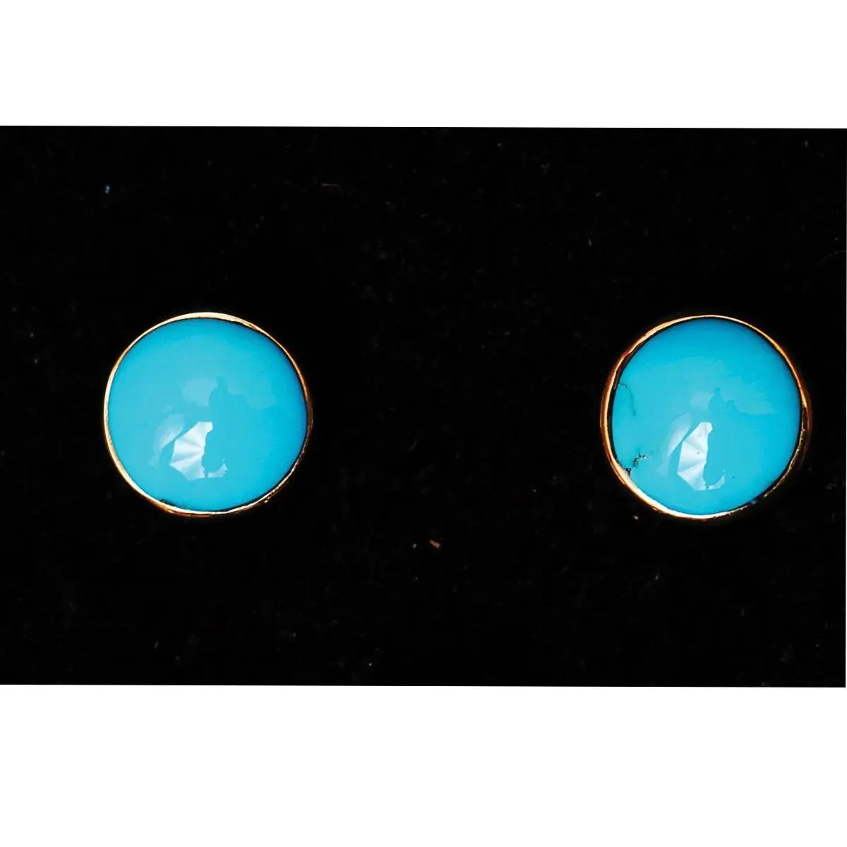 Our Gold and Turquoise Post Earrings are turquoise cabochons set in gold.. true classic elegance.