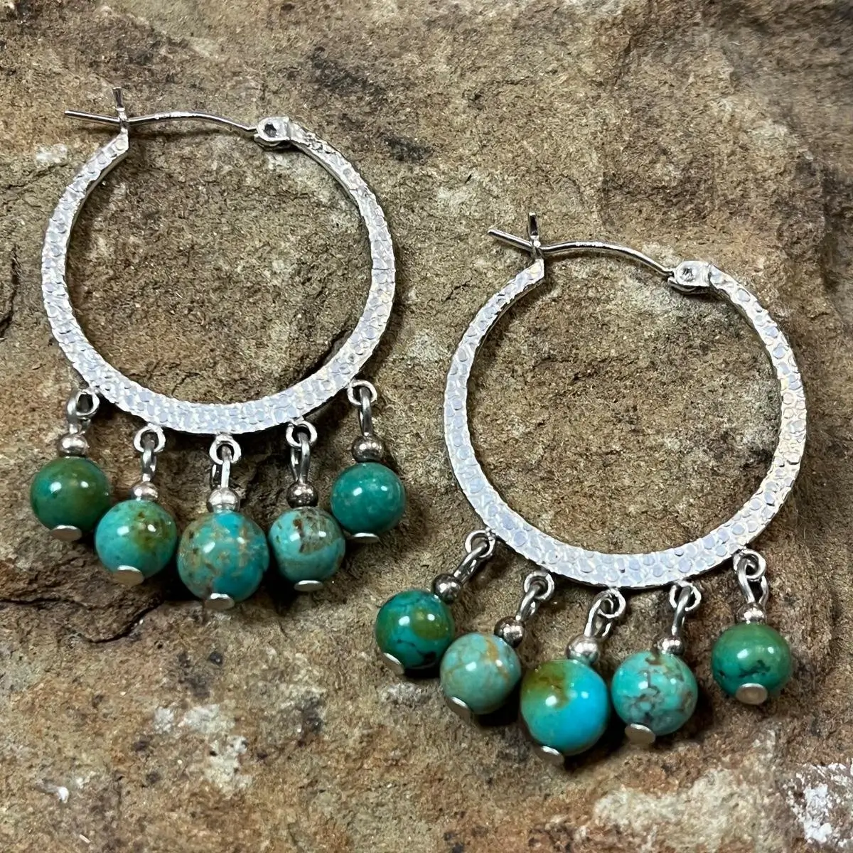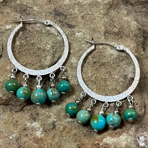 Hammered Hoop & Turquoise Earrings - Southwest Indian Foundation