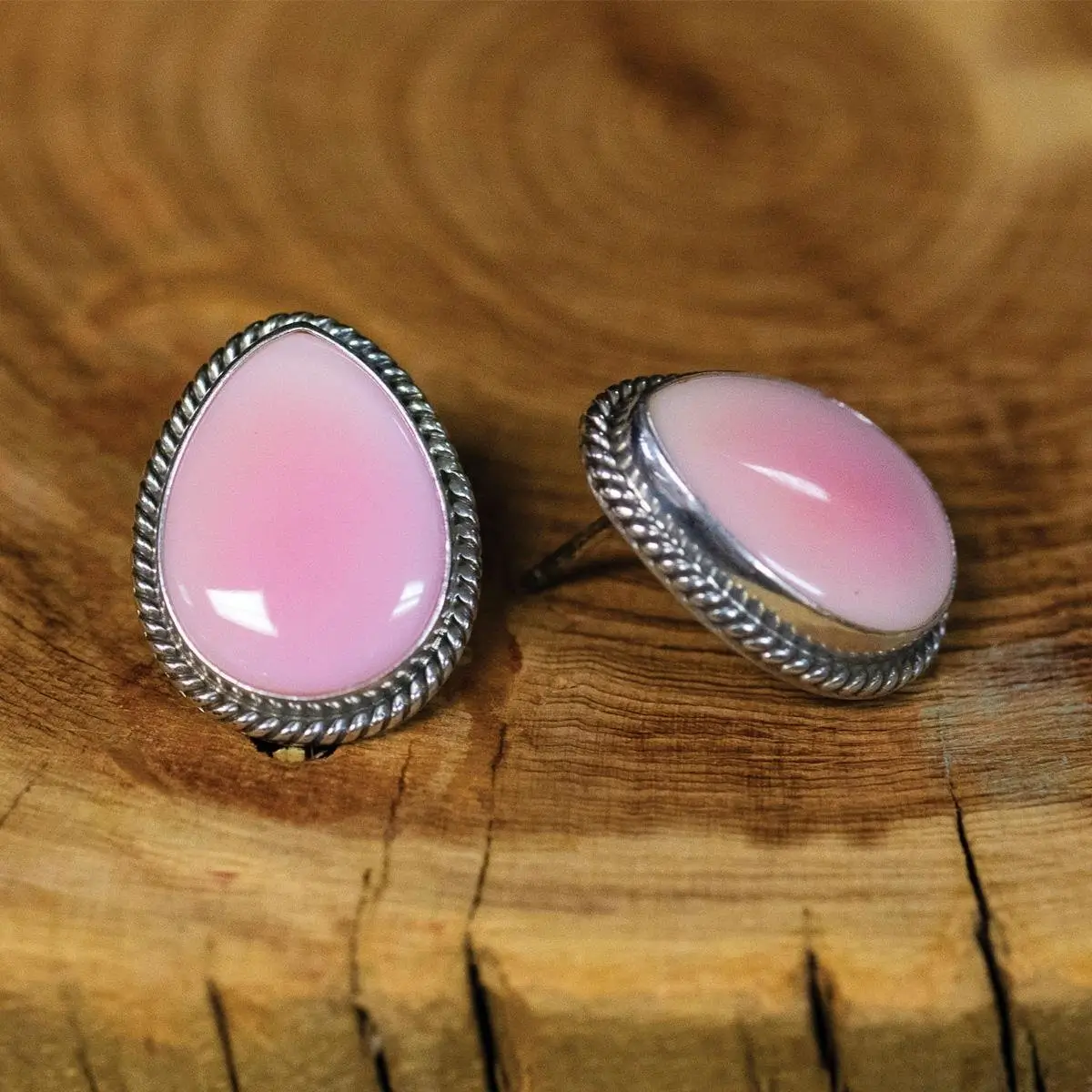 Our Pink Conch Teardrop Post Earrings are 3/4" and meticulously set in Sterling Silver. Pierced Only.