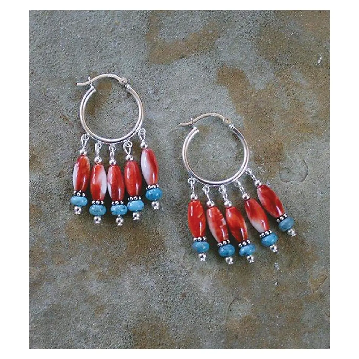 Five dangles of spiney oyster and turquoise are stunning with sterling silver beading.