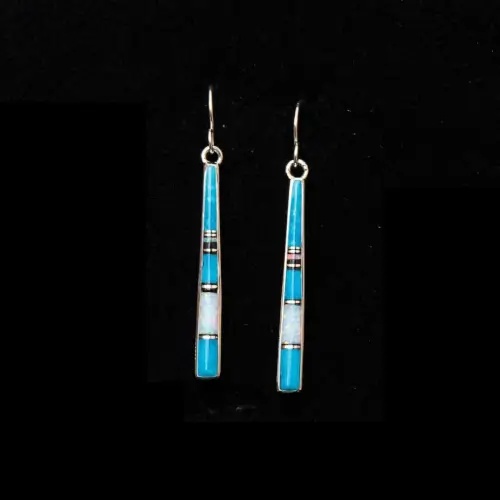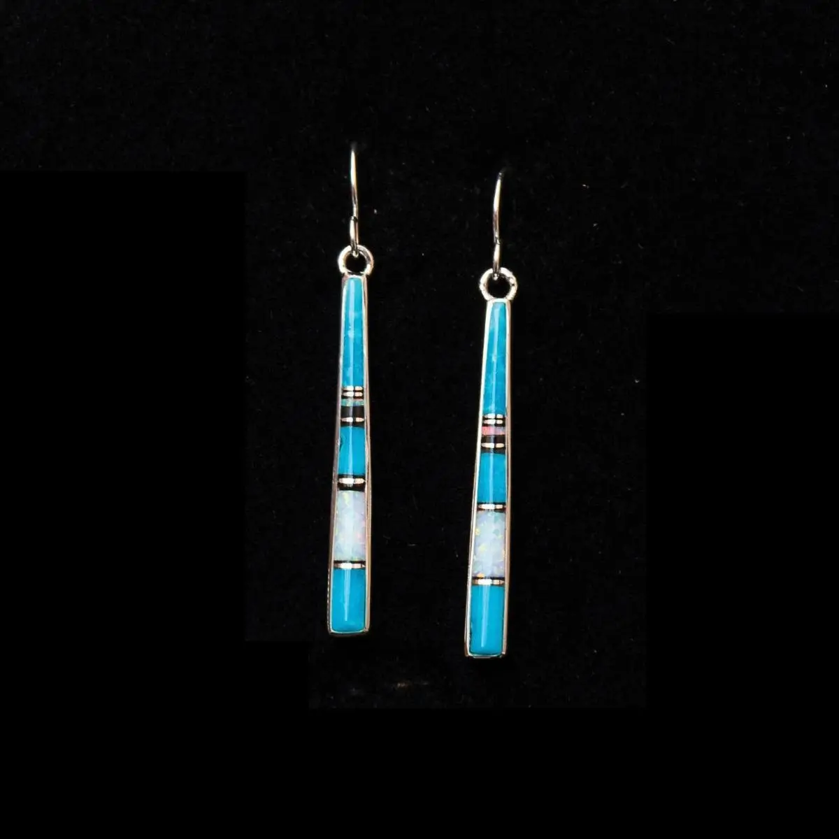 Give your outfit a cool vibe with these drop earrings! The sleek, vertical design makes these subtle but stylish. These Turquoise and Opal Earrings are set in sterling silver.