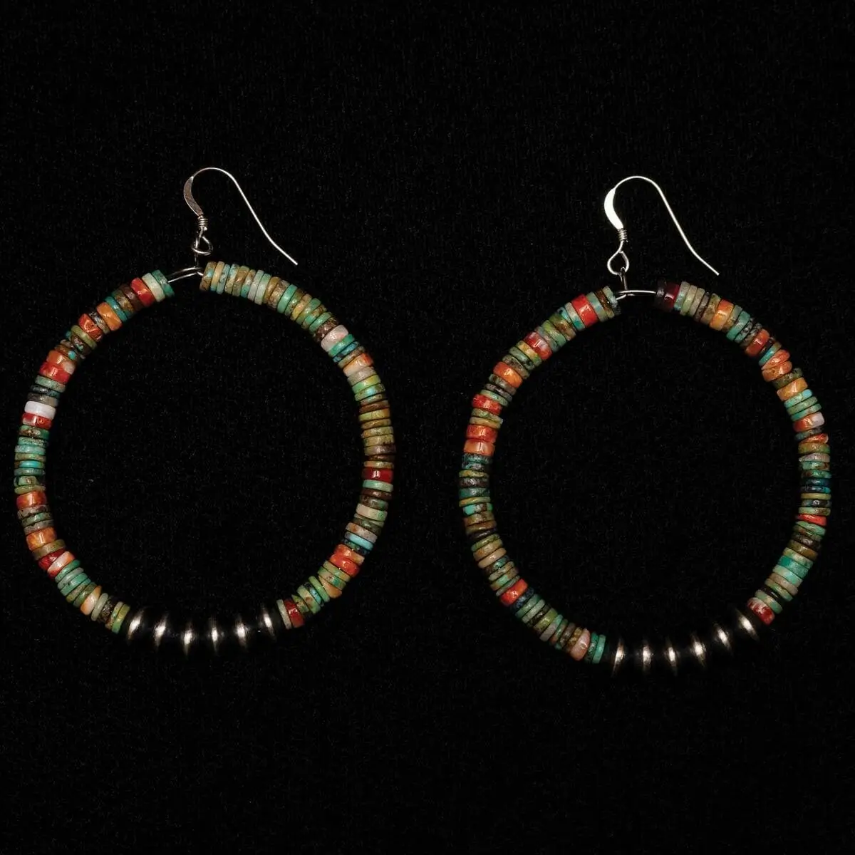Turquoise & Spiny Oyster Hoop Shell Earrings - Southwest Indian Foundation