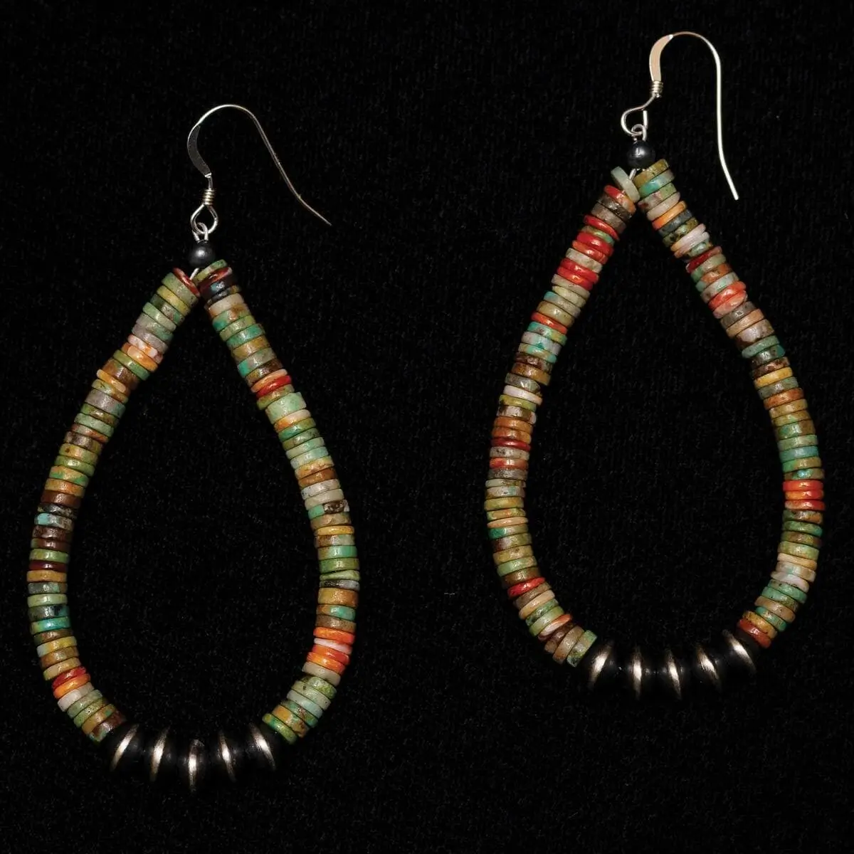 Turquoise & Spiny Oyster Teardrop Hoop Shell Earrings