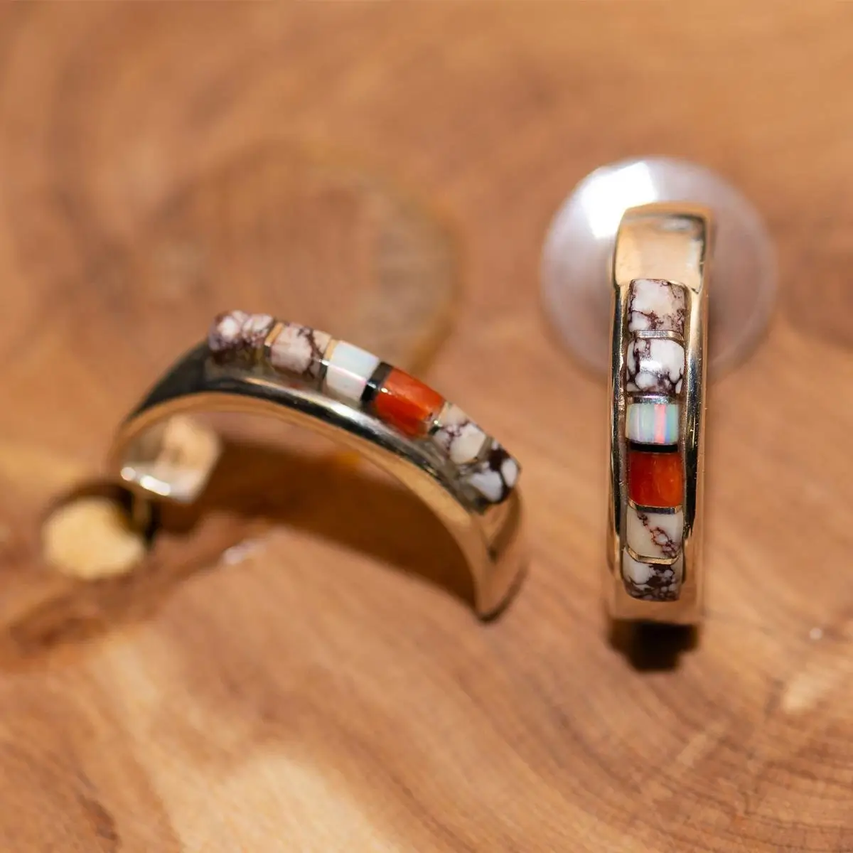 Stunning inlay in this eye-catching Whitehorse Inlay Half Hoop Earrings.