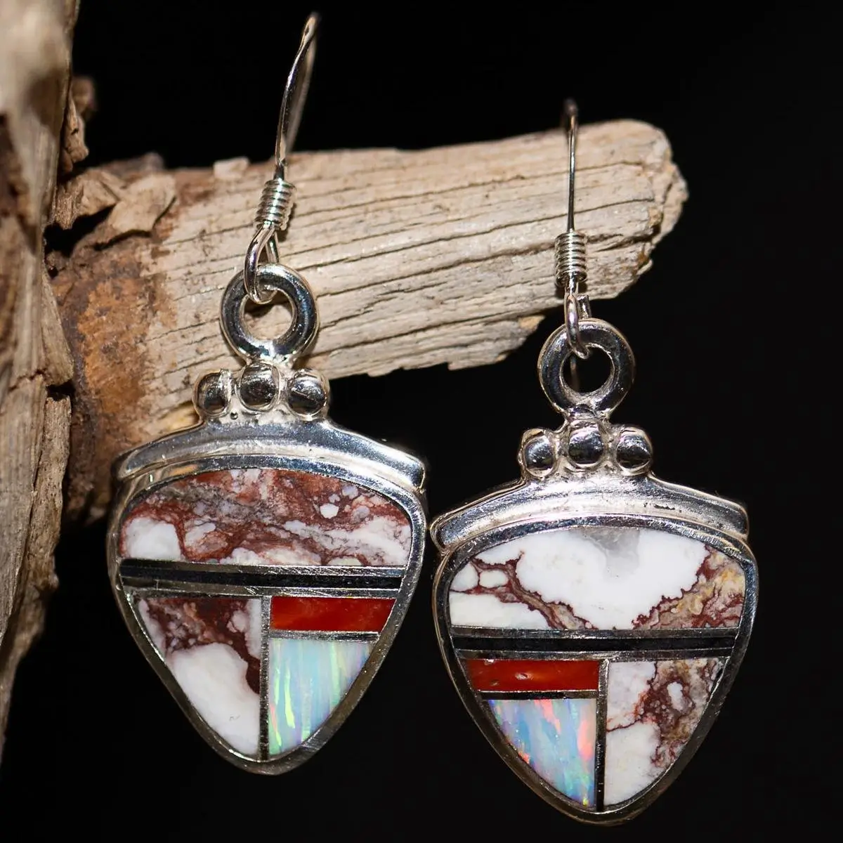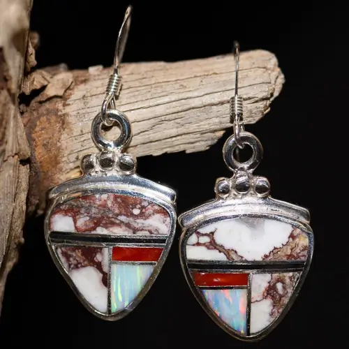 Authentic Native American hand-crafted jewelry represents each individual artist. The exquisite Wild Horse collection features stones similar to White Buffalo, the red portions are Hemitite with Coral, and red and some black highlights in genuine sterling silver.