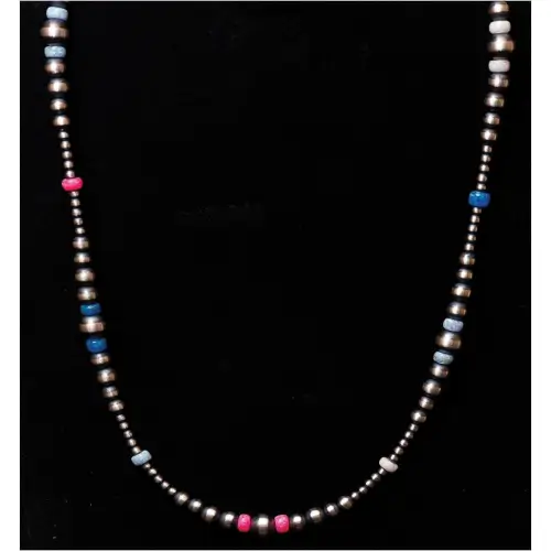 Step out in style! Beautiful sterling silver Navajo pearls with pops of brightly colored speckled synthetic opal stone. Partners perfectly with our matching bracelet.