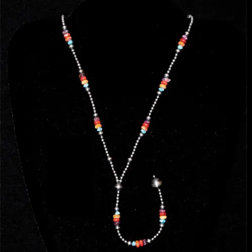 Handmade sterling silver Navajo pearls with striking turquoise and multi-color rondelles necklace.