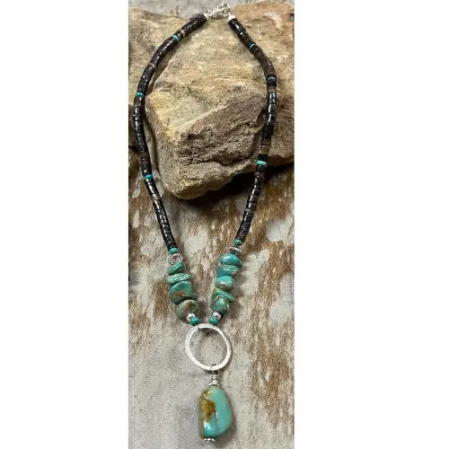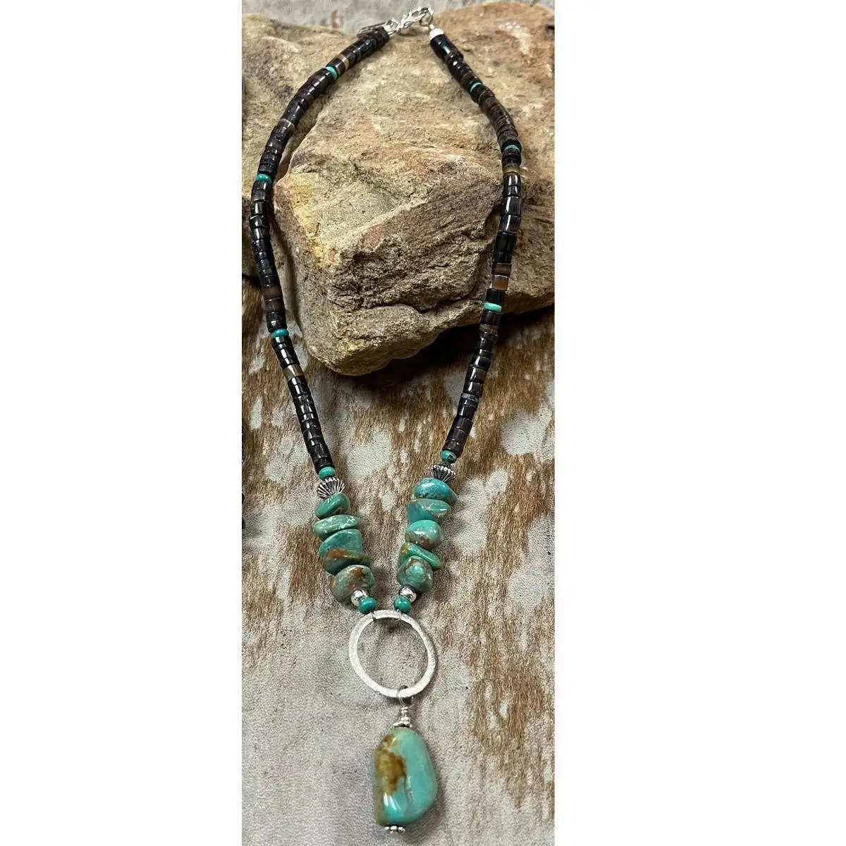 Turquoise Stone & Shell Dangle Necklace - Southwest Indian Foundation