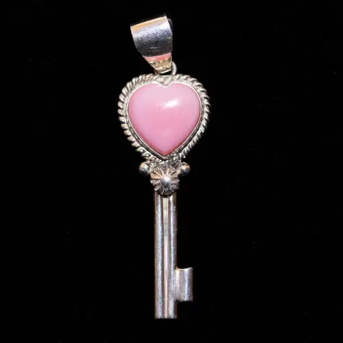 Pink Conch Heart & Key Pendant - Southwest Indian Foundation