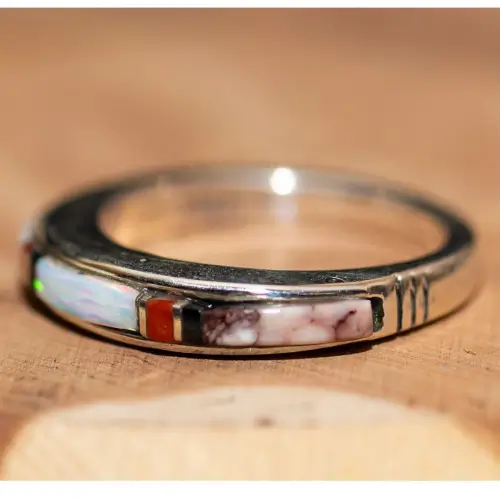 Stunning inlays in this eye-catching Whitehorse Inlay Ring.
