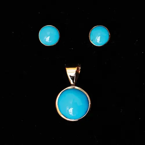 Anazasi Gold and Turquoise Earring and Pendant Set