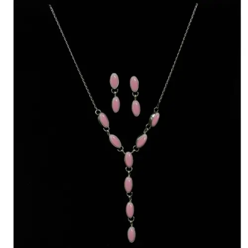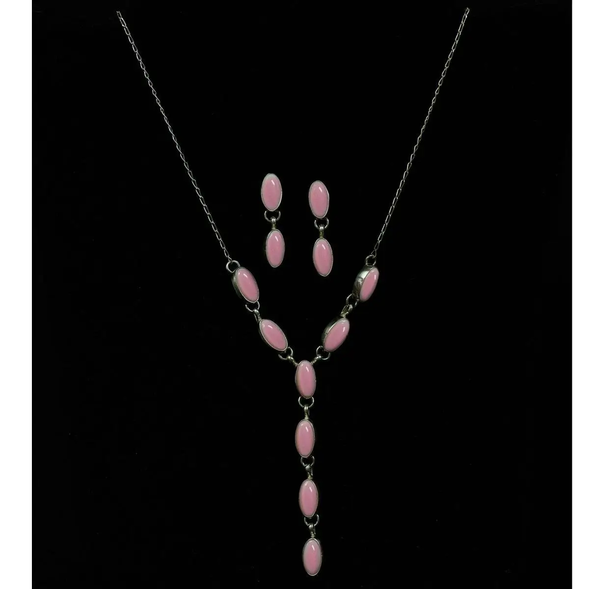 Our Pink Conch Oval Multi-Stone Necklace and Earring Set is sure to be a dazzler! Pierced only.
