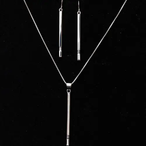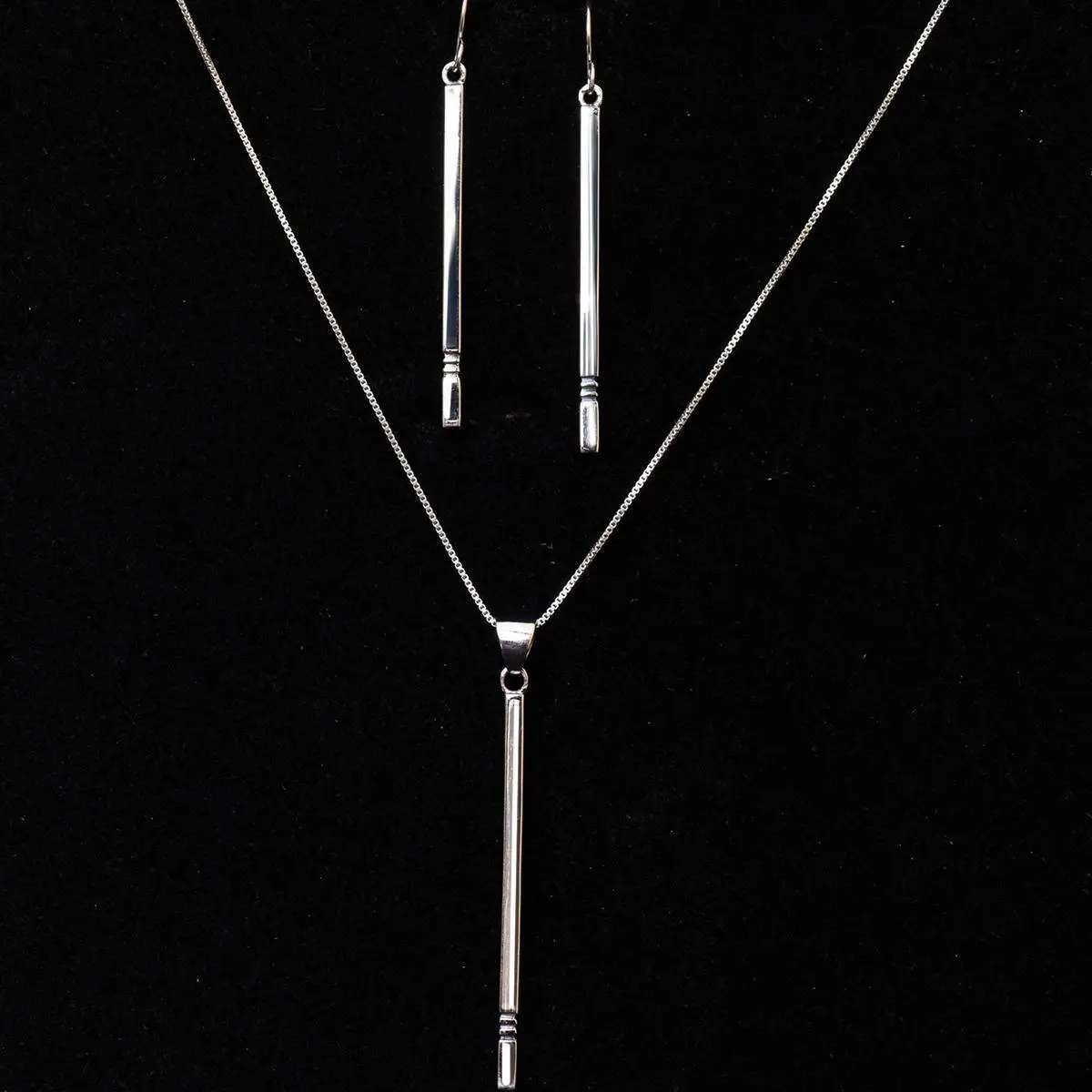 Give your outfit a cool vibe with this Sterling Silver Drop Earrings and Necklace Set. The sleek, vertical design makes this set subtle but stylish. All pieces are set in sterling silver.