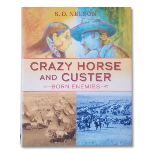 In 1876, Lakota Chief Crazy Horse helped lead his people's resistance against the white man's invasion of the northern Great Plains. One of the leaders of the US military forces was Army Lt. Col. George Armstrong Custer. The men had long been enemies. At the height of the war, when tribalism had reached its peak, they crossed paths for the last time. In this action-packed double biography, S. D. Nelson draws fascinating parallels between Crazy Horse and Custer, whose lives were intertwined. These warriors were alike in many ways, yet they often collided in deadly rivalry. Witness reports and reflections by their peers and enemies accompany side-by-side storytelling that offers very different perspectives on the same historical events. The two men's opposing destinies culminated in the infamous Battle of the Greasy Grass, as the Lakota called it, or the Battle of the Little Bighorn, as it was called by the Euro-Americans. In Crazy Horse and Custer, Nelson's gripping narrative and signature illustration style based on Plains Indians ledger art, along with a mix of period photographs and paintings, shines light on two men whose conflict forever changed Lakota and US history. The book includes an author's note, timeline, end notes, and bibliography. (Hardcover, 140 pp.)