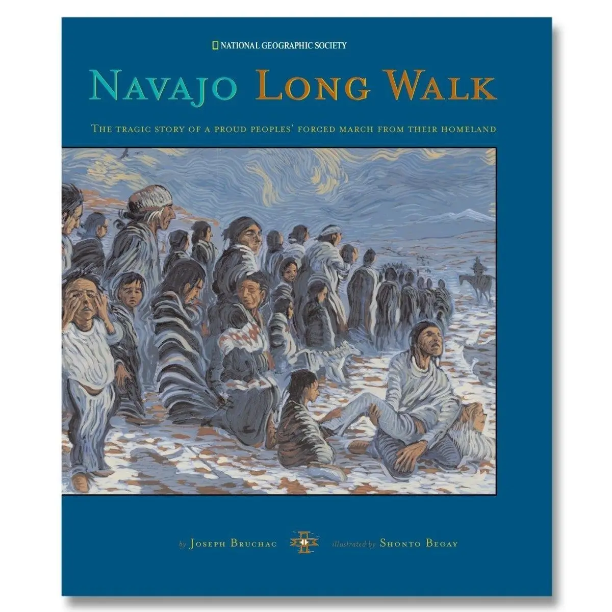 Joseph Bruchac is a writer and storyteller of Abenaki heritage who feels that his lifes work is sharing stories told to him by elders of various Native American peoples. "We were given two ears so that we may hear both sides of every story notes Bruchac at the start of this detailed, sobering account of the Navajo people's forced relocation on foot from their homelands in what is now Arizona to the Bosque Redondo Reservation in the New Mexico Territory between 1863 and 1865. Shonto Begay's paintings, rendered with acrylics on clay board in swirling brushstrokes, convey urgency and emotion for this tragic story (Hardcover, 64 pp.)