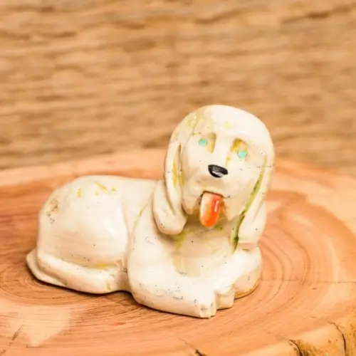 Ornate hand-carved fetishes are the epitome of Zuni artistry. This Golden Retriever fetish with spiny tongue is approx. 1.5"