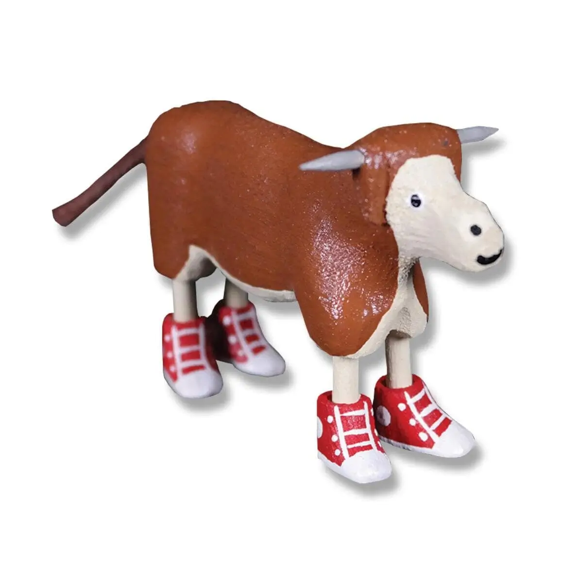 Navajo artists Chandler and Taphina Begaye are the husband and wife creators of this whimsical, hand-carved and hand-painted folk art Brown Cow—complete with red hightops! (Approx. 4" Long)