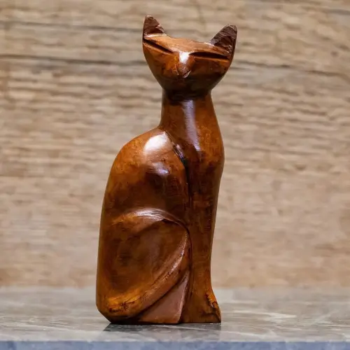 The picture of self-satisfaction, you can almost hear the purr of this felicitous feline. Hand-carved from solid Ironwood in Mexico. (Small Cat 5" High)(Large Cat 6 1/2" High)