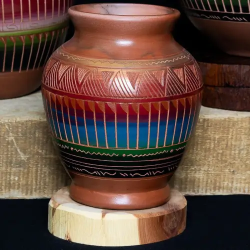 The Horsehair collection from New Mexico Pottery Company of Gallup, NM is absolutely stunning! Whether its on your bookshelf, as a center piece for your table, or as a gift, these pots are sure to turn heads! Perfect for any collector…add any of the beautiful and colorful offerings to your home decor. 6"H x 4"W