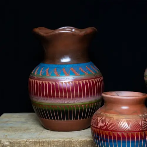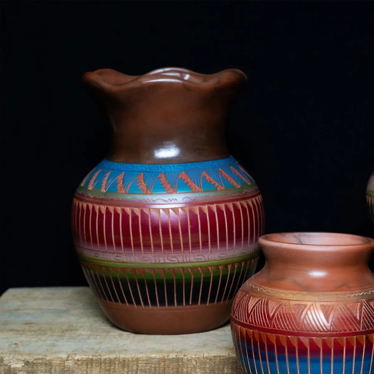 The Horsehair collection from New Mexico Pottery Company of Gallup, NM is absolutely stunning! Whether its on your bookshelf, as a center piece for your table, or as a gift, these pots are sure to turn heads! Perfect for any collector…add any of the beautiful and colorful offerings to your home decor. 8.5"H x 7"W