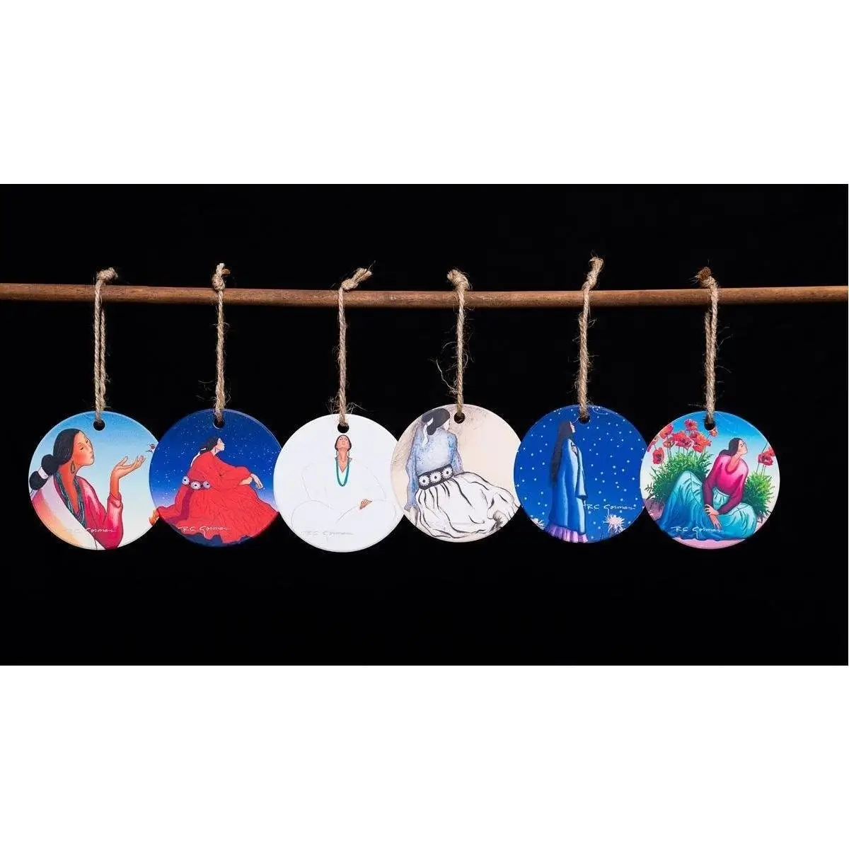 A set of 6 assorted RC Gorman Ornaments, straight from our special RC Gorman Collection!