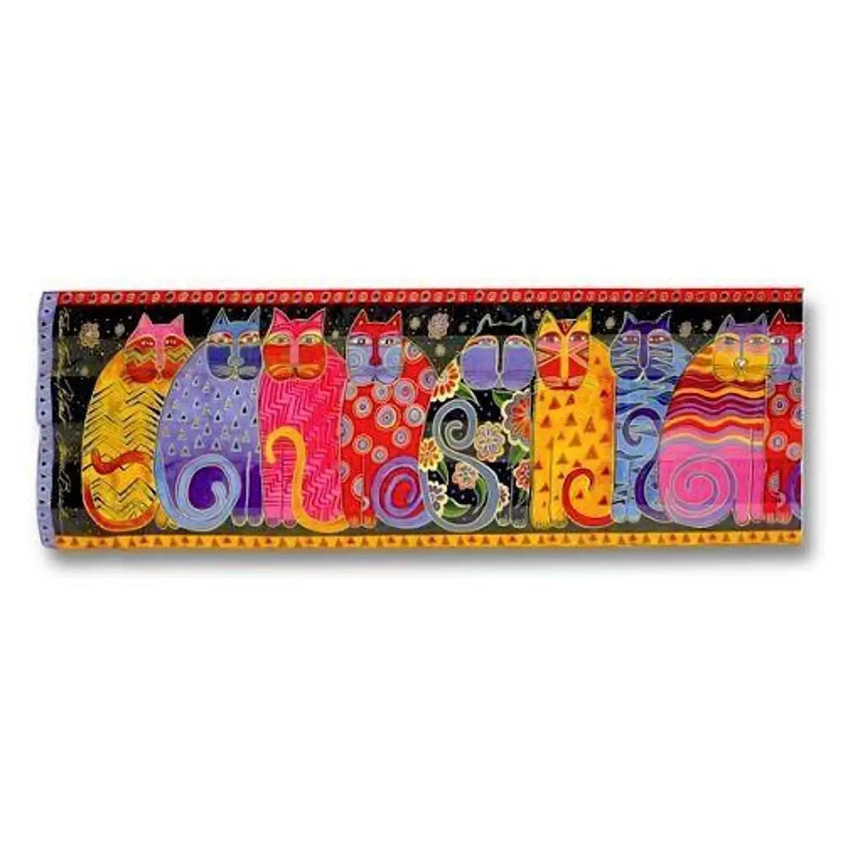 Say Cheese! Delightful Cat Scarf from celebrated designer Laurel Burch. Embellished with sequins. (53" x 11")