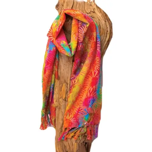 Accent your look with this delightful bright and multi-color fringed sunflower scarf. Super soft and lightweight, this scarf is perfect for year-round wear.