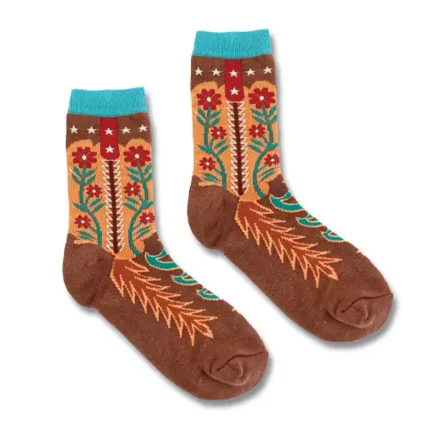 Playful sock design looks just like a ladies' cowboy boot! Cotton/Nylon blend. Machine washable. (Fits sizes 9-11)